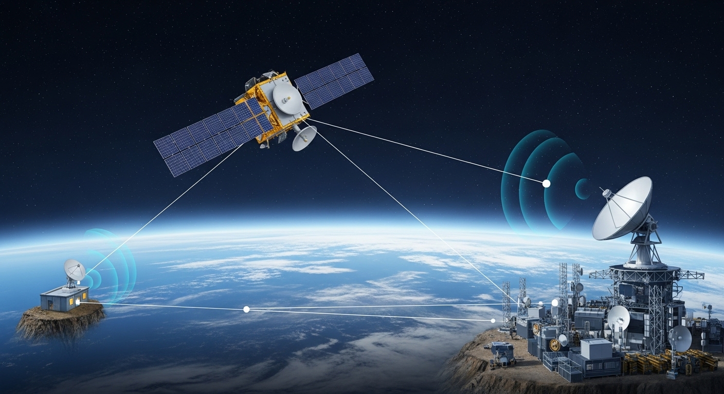 各キャリアが目指している「スマートフォンと衛星の直接通信(Direct to Cell)」。これは、これまでの衛星電話とは全く異なる概念です。巨大なアンテナを持つ衛星が、宇宙に浮かぶ携帯電話基地局として機能し、私たちの手の中にある普通のスマホと直接つながるのです。